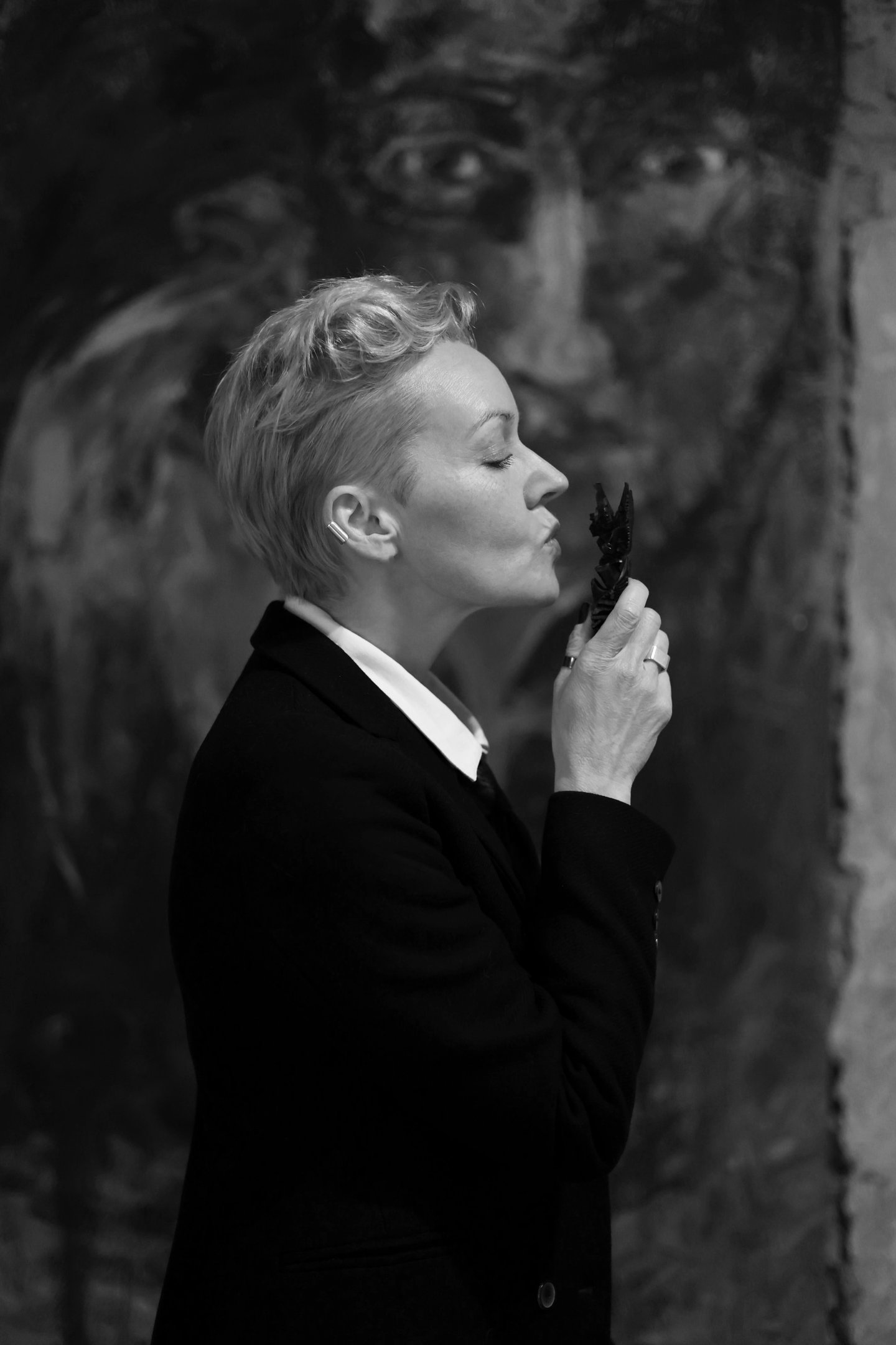 Through body, poses, and symbols, it visualizes hidden conflict and the tension between inner emotions and outward composure.