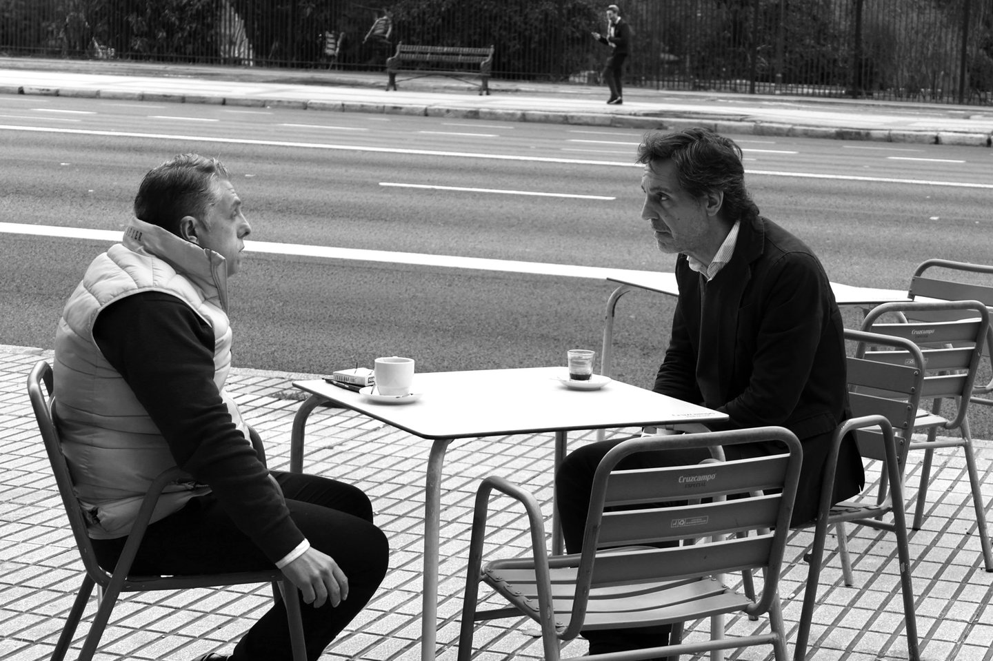 Two men, one table, one conversation that holds the whole world between them.
