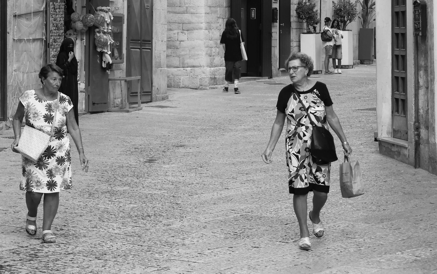 Six women, one street, six entirely separate lives — each passing through the same moment, only the street connecting them